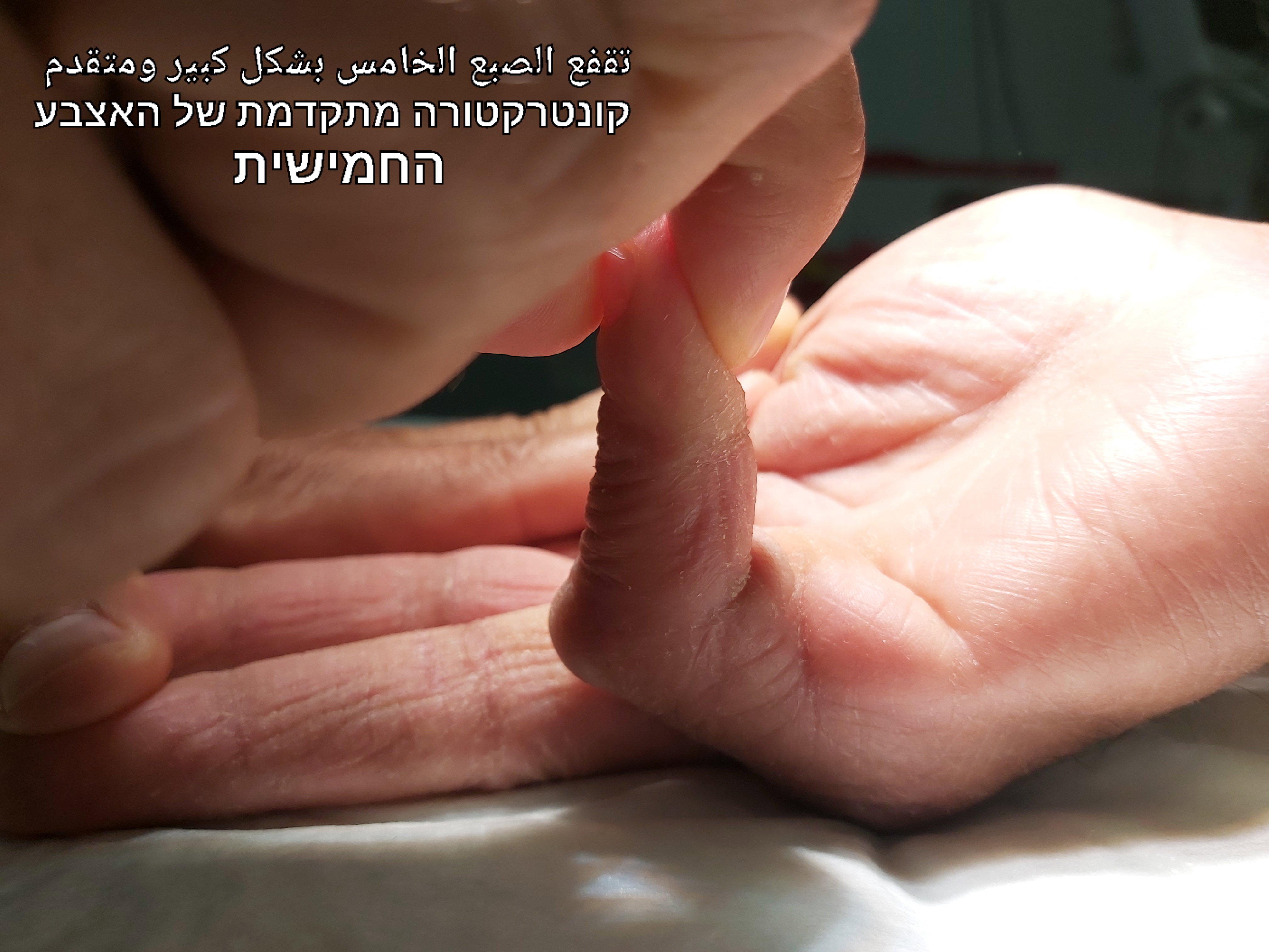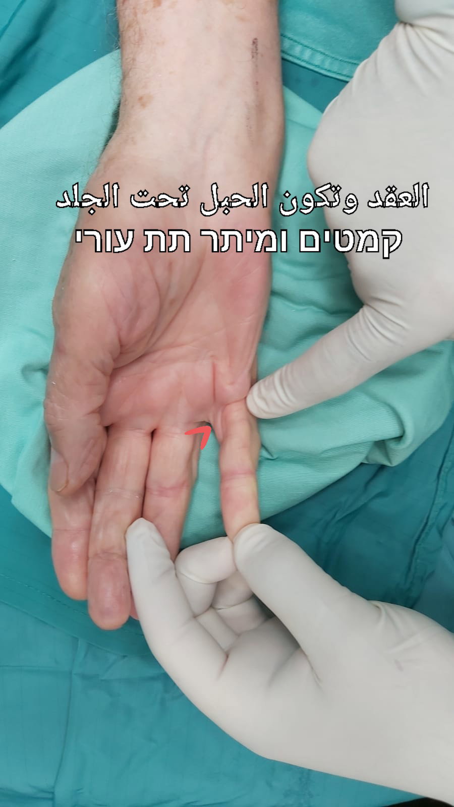 4. ניתוח במהלך הניתוח מוסרת הרקמה החולה מכף היד בעזרת חשיפה וכריתה של המיתר הגורם לכיווץ. הניתוח מתבצע בהרדמה כללית.יתרונות- שיפור גדול בטווח התנועה של האצבע עד ליישור מלא. חסרונות- התערבות ניתוחית עלולה להיות מסובכת בשל הידבקויות מרובות לרקמות הסובבות וכן שינוי באנטומיה הרגילה של היד, הגדלת הסיכון לפגיעה בעצבים ובכלי דם, קרעים בעור וצורך בשימוש בשתל עור כמו כן זיהום וזמן החלמה ארוך לאחר הניתוח הכולל טיפול בפצע של הניתוח וצורך בטיפול פיזיותרפי ממושך.המלצות לאחר ניתוח- הרמת היד למספר ימים למניעת נפיחות, הסרת תפרים לאחר שבוע עד 10 ימים, החלפת הגבס בסד, וטיפול פיזיותרפי.